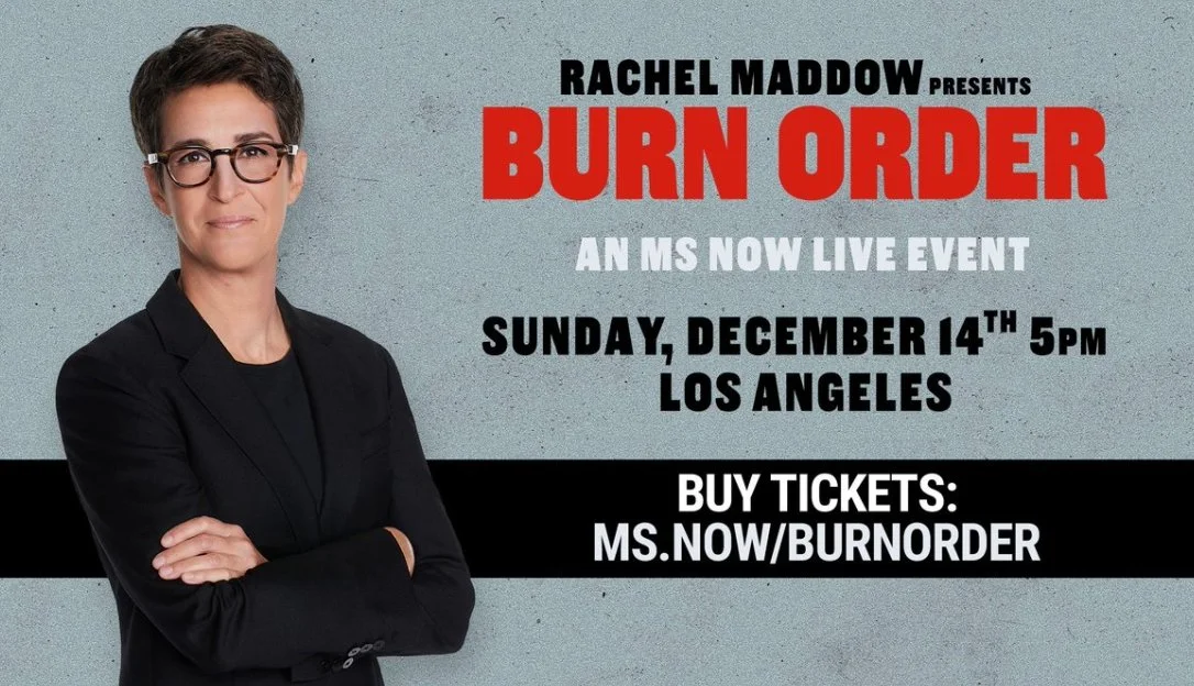 Satsuki Ina, along with Frank Abe and Lorraine Bannai, will join Rachel Maddow on stage at the launch event for Rachel’s new podcast, BURN ORDER.